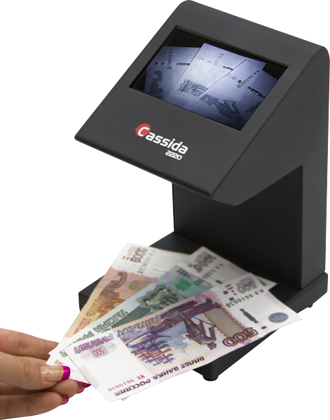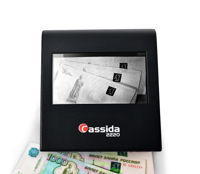 Детектор Cassida 2220 прост и удобен в управлении. Имеет прочный металлический корпус и компактные размеры. Встроенный монитор, размером в 4”, и камера с высоким разрешением, позволяют легко и быстро проверить банкноты на подлинность.
